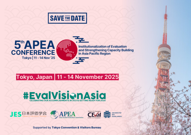 Focus on findings of the CEval Evaluation GLOBE study The fifth APEA Conference will take place in Tokyo, Japan, from November 11 to 14, 2025. It will be co-hosted by the Japan Evaluation Society (JES),...